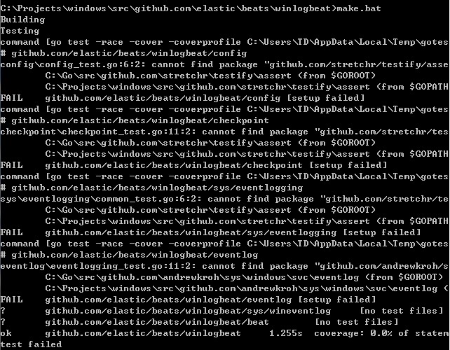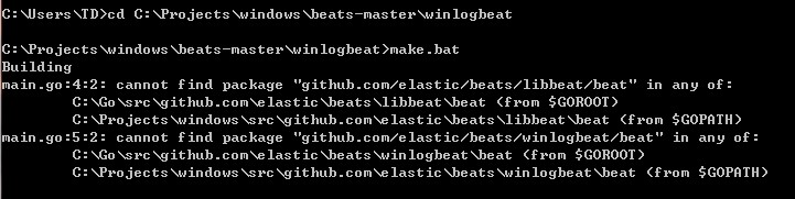 並且把beats-master改名為beats放入C:\Projects\windows\src\github.com\elastic資料夾內, 在執行Building出現的錯誤,是因為缺少其它套件,需額外下載到對應資料夾。
